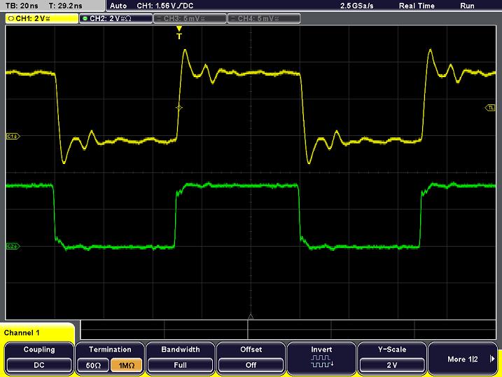 Сейчас наиболее распространенным типом осциллографических пробников являются пассивные пробники напряжения. Этот тип пробников, в свою очередь, подразделяется на высокоомные пассивные пробники (с высоким входным импедансом) и низкоомные пассивные пробники (с низким входным импедансом) с резисторным делителем напряжения. Чаще всего на практике используются высокоомные пассивные пробники с коэффициентом деления 10:1. Такие пробники входят в комплект поставки большинства современных бюджетных осциллографов и осциллографов среднего ценового диапазона. Входное сопротивление пробника составляет, как правило, 9 МОм, что, при подключении к входу осциллографа с импедансом 1 МОм, позволяет получить коэффициент деления (или коэффициент ослабления) равный 10:1. Общее входное сопротивление, таким образом, составит 10 МОм. Напряжение на входе осциллографа в 10 раз меньше напряжения на входе пробника и может быть описано следующим уравнением: По сравнению с активными пассивные пробники являются более прочным, надежным и недорогим решением. Они имеют широкий динамический диапазон (обычно более 300 В для пробника 10:1) и высокое входное сопротивление для согласования с входным импедансом осциллографа. Вместе с тем по сравнению с активными пробниками или низкоомными (z0) пассивными пробниками с резисторным делителем они имеют более узкую полосу пропускания, а из-за высокой входной емкости могут создавать значительную нагрузку на исследуемую цепь. Рассмотрим низкоомные пассивные пробники с резисторным делителем. Эти пробники имеют входное сопротивление 450 или 950 Ом, что позволяет обеспечить ослабление 10:1 или 20:1 при входном сопротивлении осциллографа 50 Ом. За входным резистором пробника расположен кабель с волновым сопротивлением 50 Ом, согласованный с 50-омным входом осциллографа. Следует помнить, что для использования этого типа пробников осциллограф обязательнодолжен иметь входное сопротивление 50 Ом. Важнейшее преимущество низкоомных пассивных пробников — небольшая емкостная нагрузка и широкая полоса пропускания (порядка нескольких гигагерц), что позволяет выполнять точные измерения временных характеристик. Кроме того, такие пробники имеют относительно невысокую стоимость по сравнению с активными пробниками с такой же полосой пропускания. Низкоомные пробники используются при проведении измерений в ЭСЛ-схемах (логические схемы с эмиттерными связями), СВЧ-приложениях, а также в линиях передачи с волновым сопротивлением 50 Ом. Единственным недостатком пробников является относительно высокая резистивная нагрузка, что может сказаться на точности измерений амплитуды сигнала.