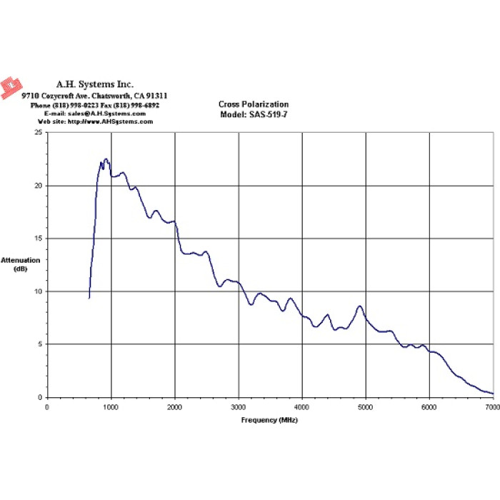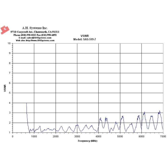 Антенна SAS-519-7 является логопериодической антенной (Log Periodic Antenna) A.H. Systems и используется для измерений в диапазоне 650 – 7000 МГц. Модель антенны SAS-519-4 превосходно подходит для проведения тестирования систем коммуникационных, а также беспроводных систем.