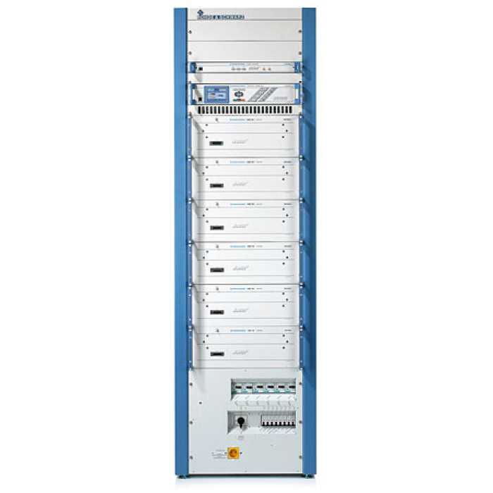 NR8200 от Rohde & Schwarz охватывает диапазон от 2,5 до 30 кВт. В состав передатчиков входят следующие компоненты: возбудитель R&S SU800, усилитель мощности R&S VU825, стойка передатчика с системой охлаждения, сумматор мощности, распределитель мощности, модуль управления R&S®NetCCU800®. Все передатчики обладают превосходными техническими характеристиками, оптимальным соотношением «цена/качество», отличаются максимальной надежностью и простотой в обслуживании. Передатчики оснащены новым современным цифровым возбудителем R&S®SU800 со встроенным интерфейсом AES/EBU. Компактные модели с воздушным охлаждением выходной мощностью до 15 кВт и глубиной корпуса всего 800 мм монтируются в 19-дюймовой стойке. Модуль управления R&S®NetCCU800® обеспечивает обмен данными с внутренними и внешними устройствами и выполняет все функции управления. Текущие данные о состоянии передающей системы могут наглядно отображаться на цветном дисплее модуля управления R&S®NetCCU800® на нескольких языках. Все необходимые диагностические параметры передатчика и усилителя можно получить как локально, так и дистанционно через стандартный протокол (IP) и стандартное программное обеспечение (веб-браузер, SNMP).
