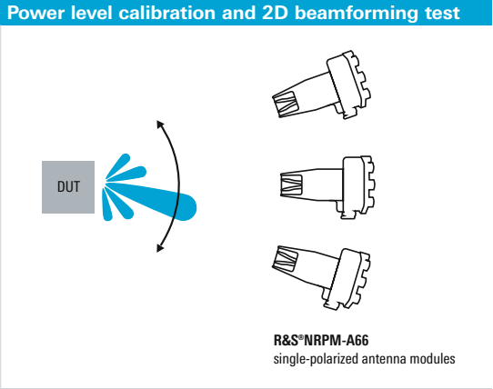 Антенные модули R&S NRPM имеют встроенный детектор для измерения мощности непосредственно на приемной антенне. Для масштабирования системы может быть выбрано количество антенных модулей в соответствии с различными требованиями. Экономичная базовая конфигурация с одним антенным модулем измеряет мощность падающей волны от тестируемого устройства до антенного модуля. Дополнительные антенные модули могут быть добавлены для того, чтобы протестировать функцию формирования луча.
