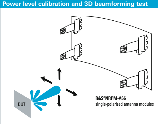 Для того, чтобы дополнительно проверить функцию вертикального формирования луча, антенные модули R&S NRPM-A66 должны быть расположены, по меньшей мере, в двух горизонтальных плоскостях.