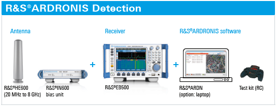 - Охватывает все возможности обнаружения, пеленгации и предоставление контмер для радиоуправляемых беспилотников (R&S®ARDRONIS-I/-D/-R)